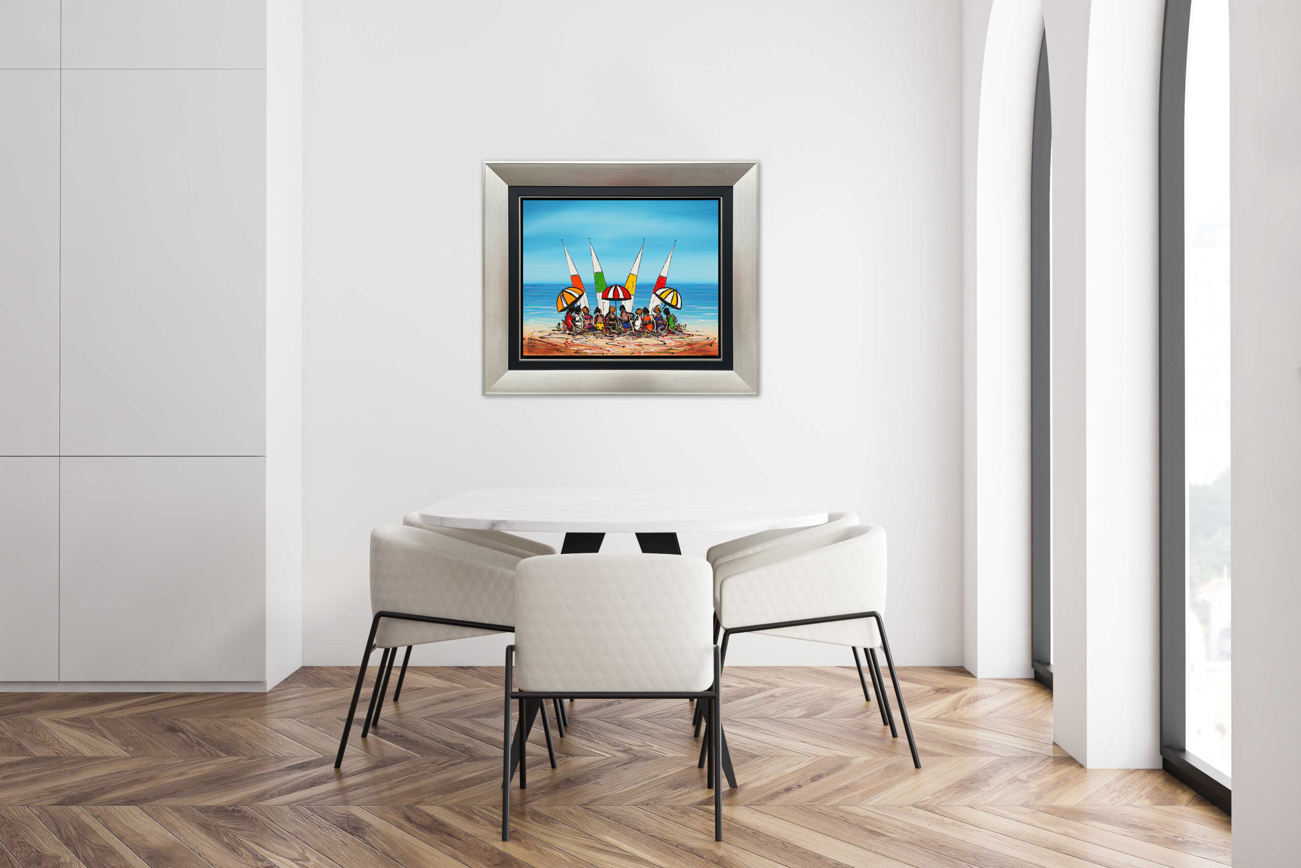 Materials Acrylic on Canvas and beautifully framed in a David Hart black and silver designer frame