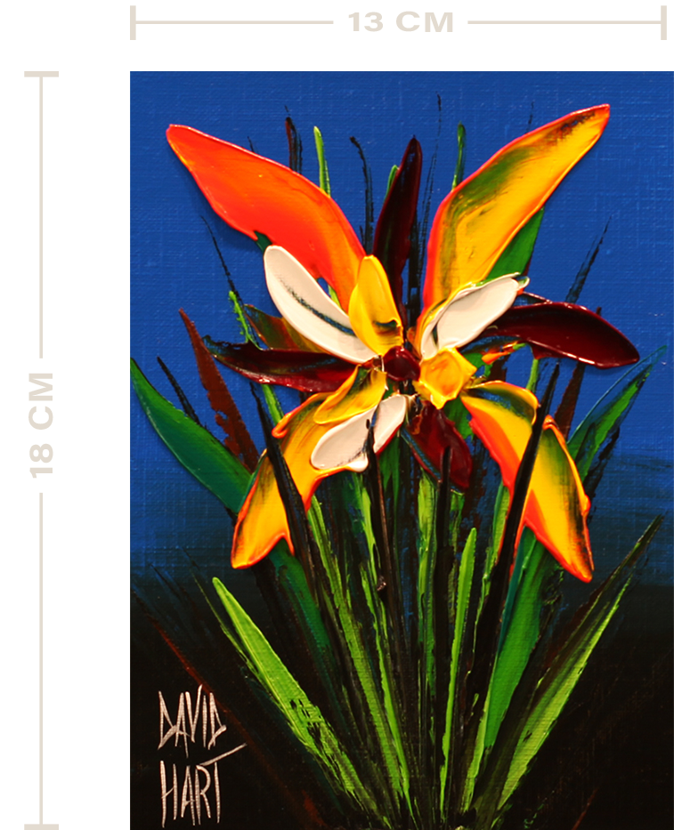 Without doubt one of David’s most popular subjects, this flower painting will transform any environment with a statement of style, vibrancy, and energy.