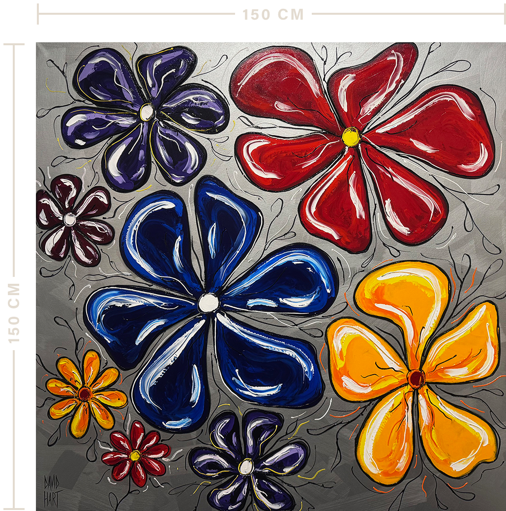 Without doubt one of David’s most popular subjects, this flower painting will transform any environment with a statement of style, vibrancy, and energy.