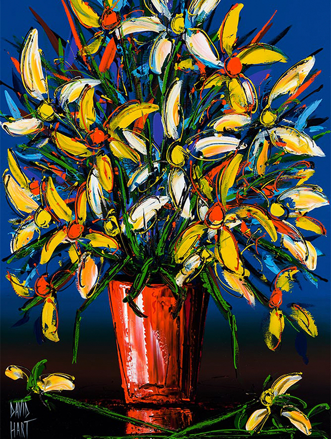Without doubt one of David’s most popular subjects, these flower paintings will transform any environment with a statement of style, vibrancy, and energy.