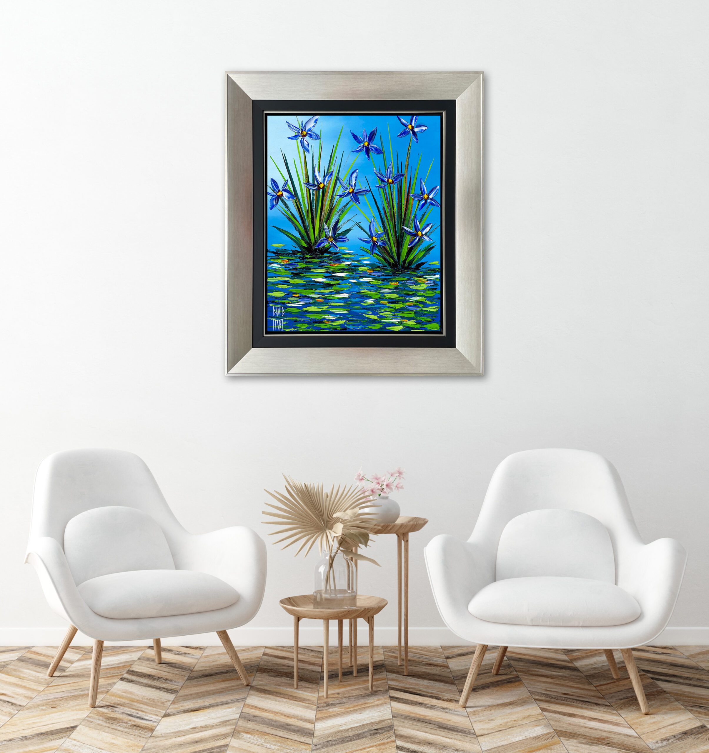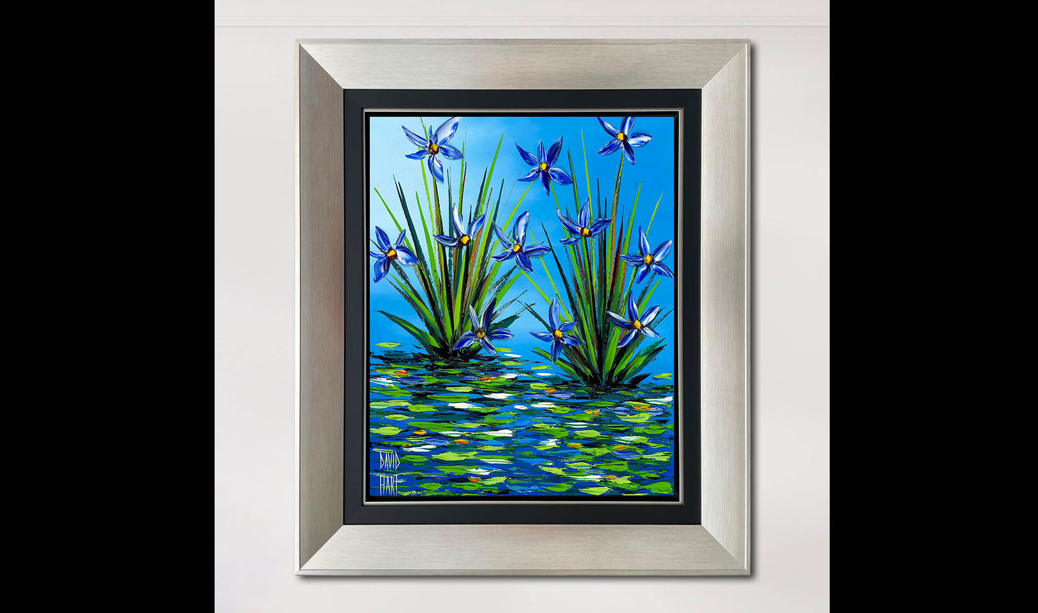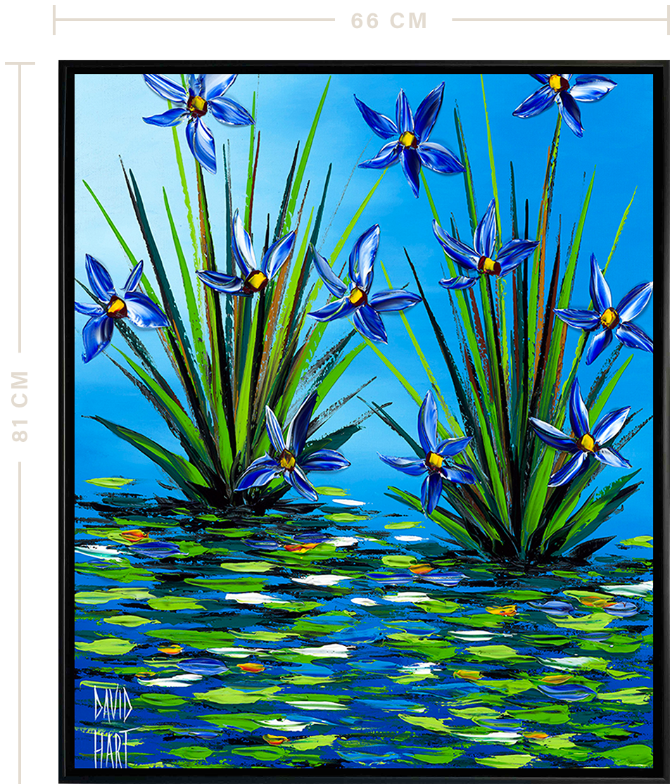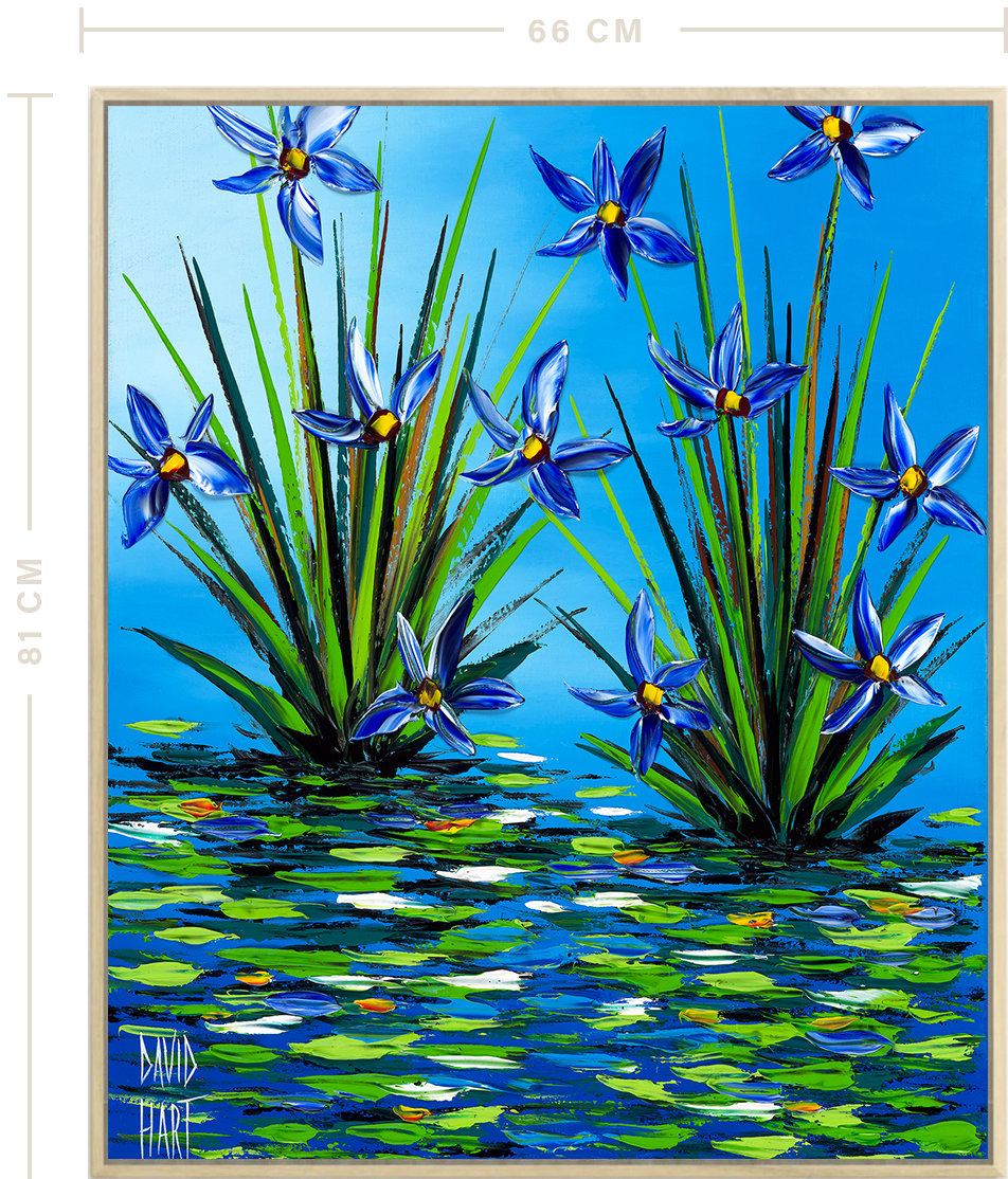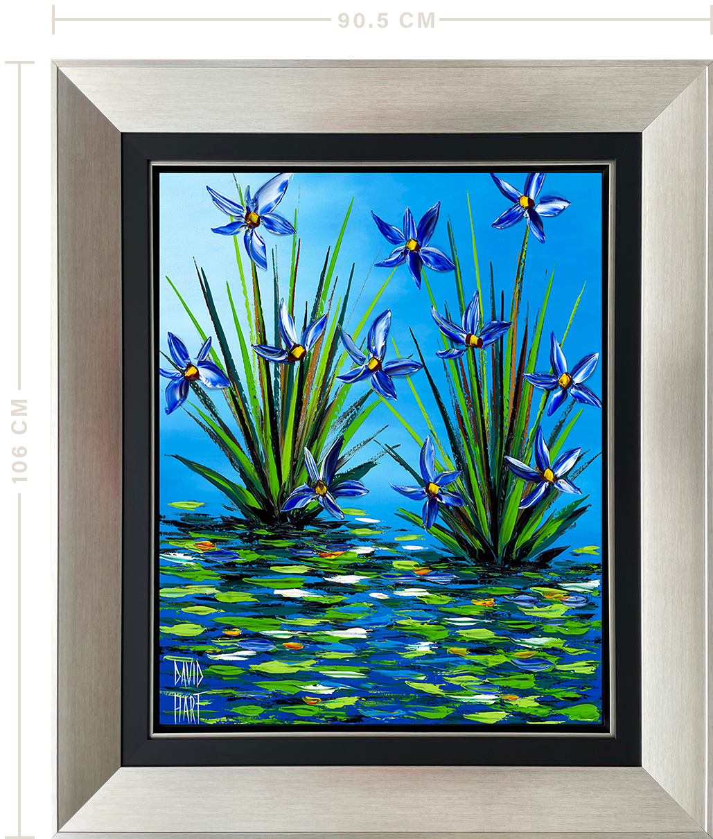 MATERIALS The Masterwork is a hand-embellished Giclée print on canvas, beautifully presented in your choice of a silver and black designer frame, a raw oak float frame, or a classic black float frame.