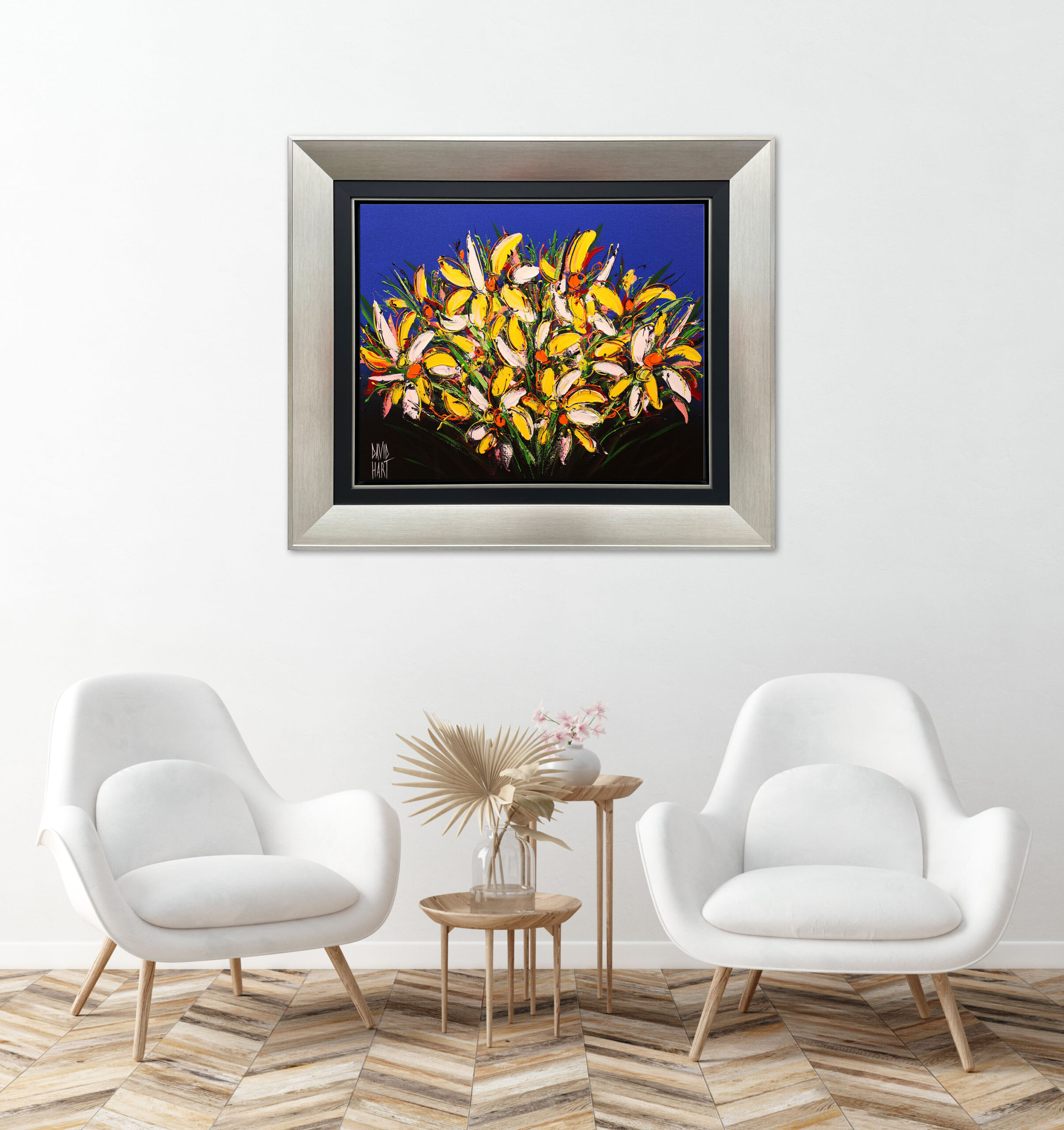 Without doubt one of David’s most popular subjects, this flower painting will transform any environment with a statement of style, vibrancy, and energy.