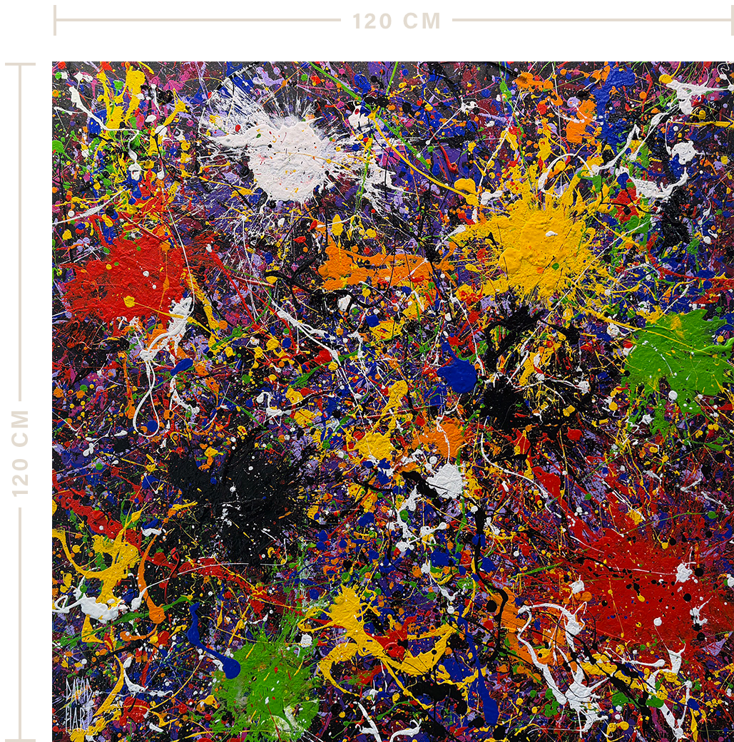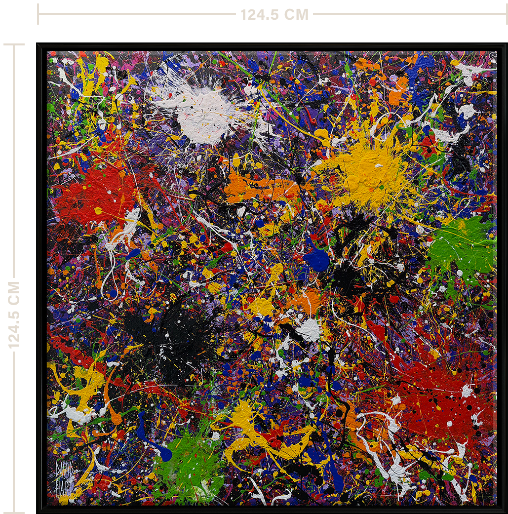 These works explore the concept that what looks like chaos in the paint can actually be manipulated, and controlled with a certain degree of accuracy. In this series, colour spills and explodes across the canvas with expression and energy, as David reveals the hidden beauty within controlled chaos.