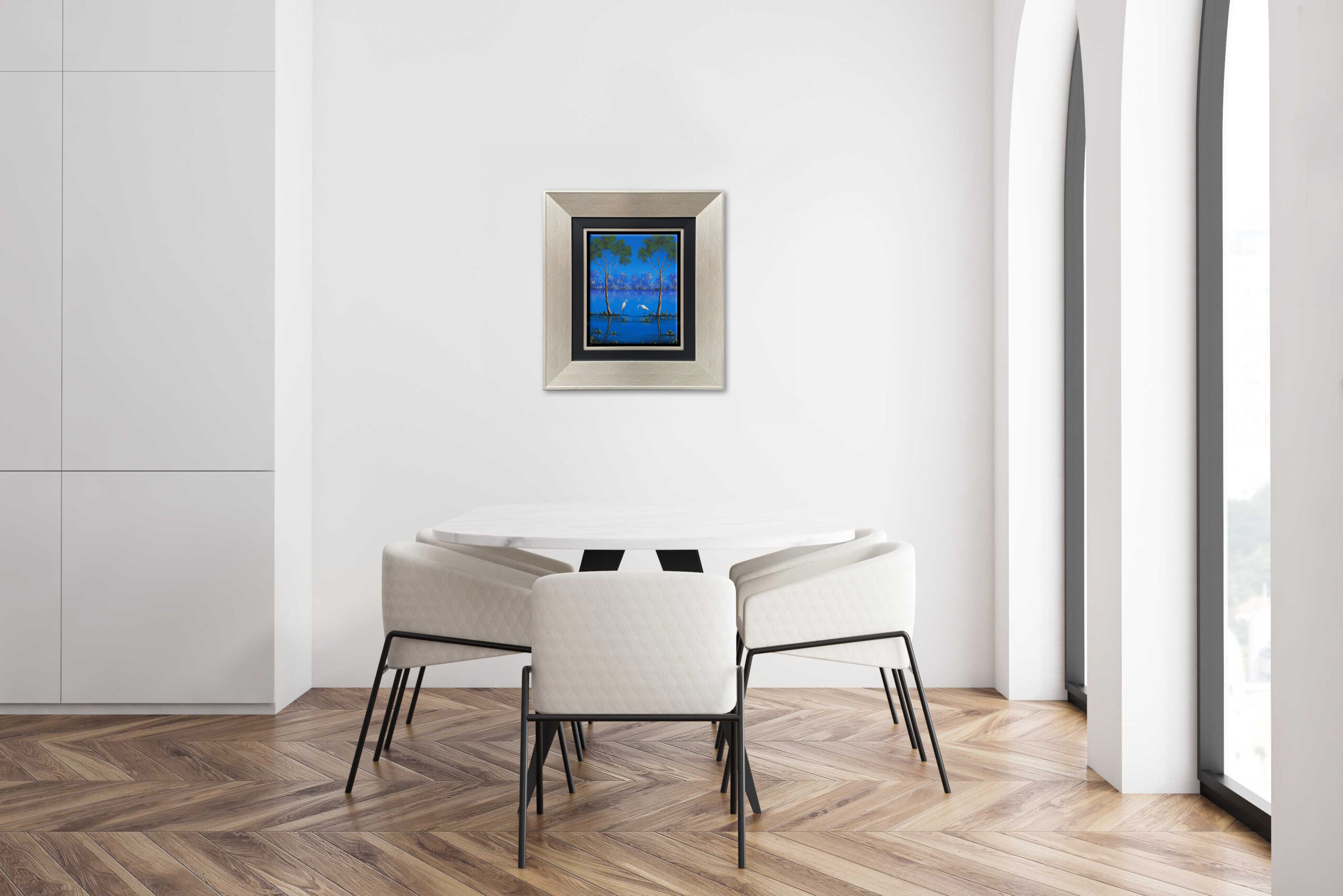 Materials Acrylic on Canvas and framed in a minimalistic black float frame